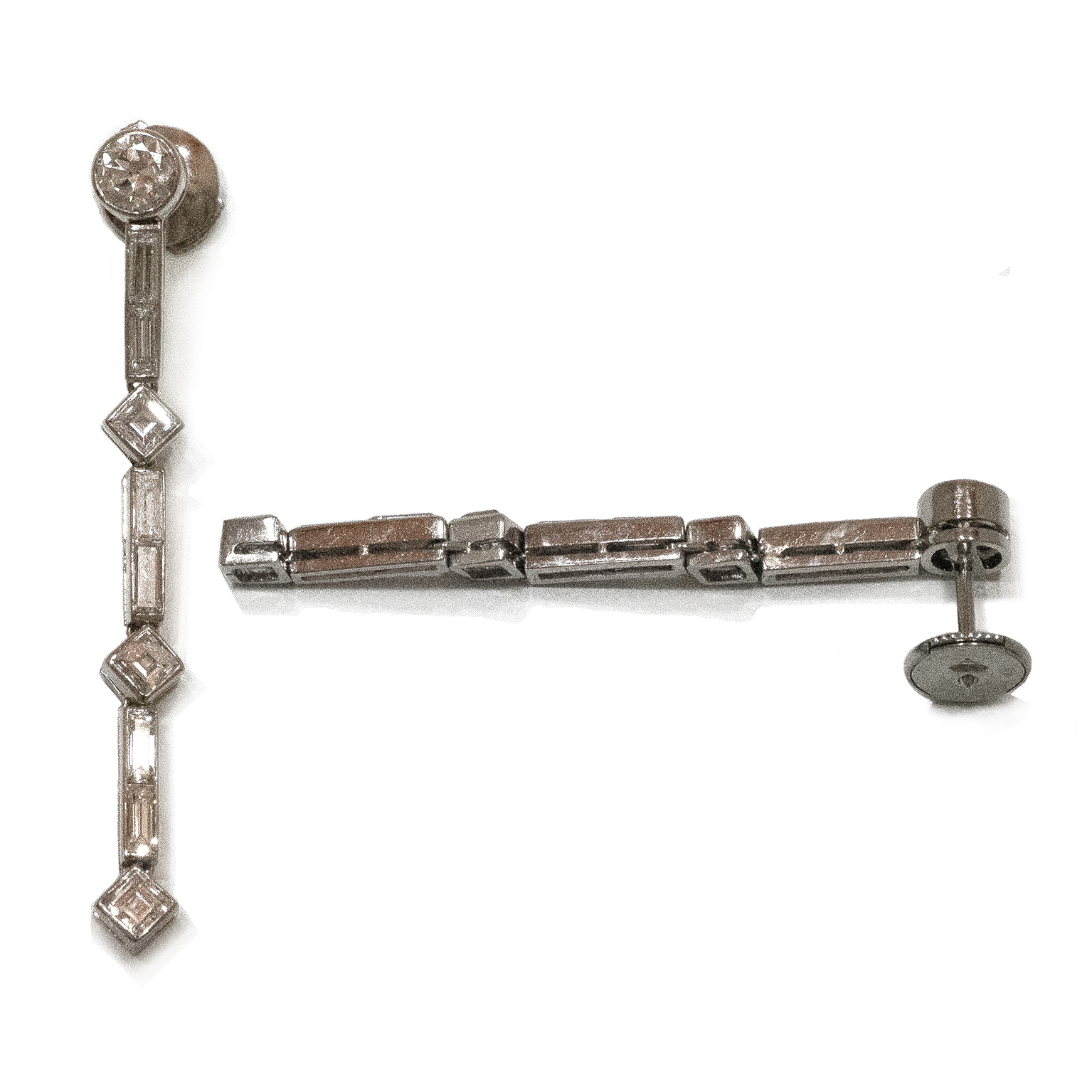 Boucle d'oreilles de la collection Adamas en platine. D'inspiration art décoratif, elle habille vos oreilles tout en longitude.