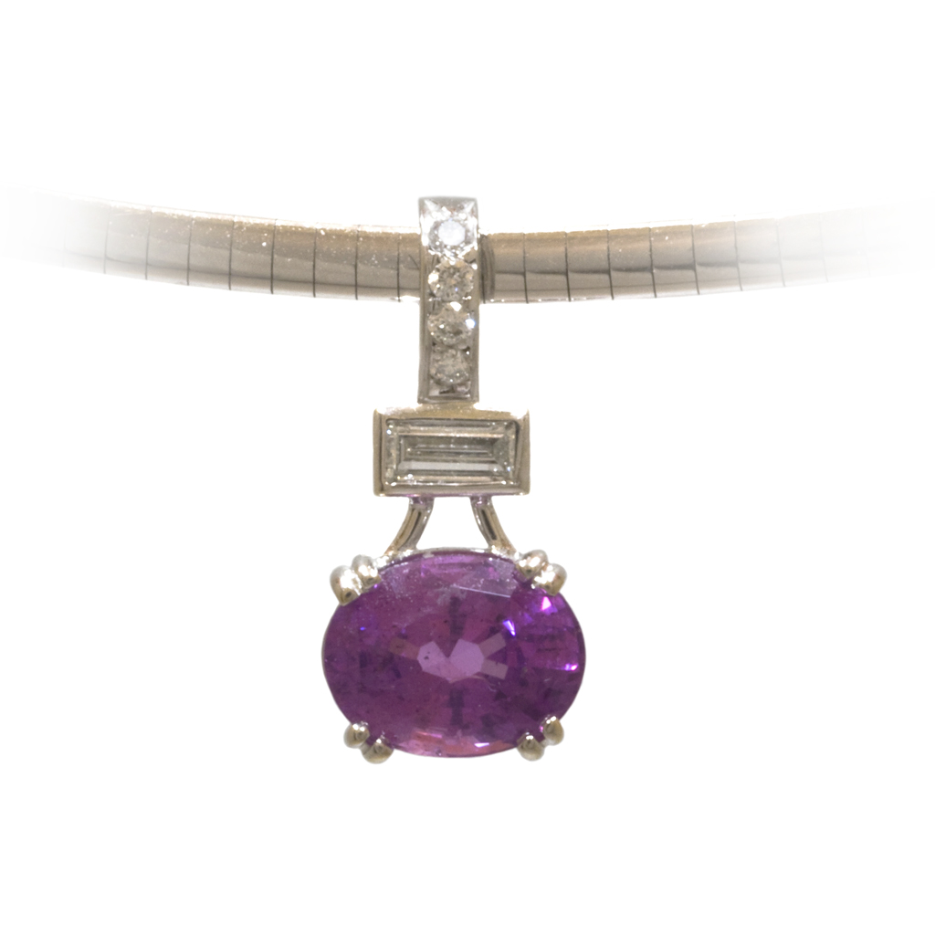 Ce pendentif Art Décoratif, en or gris palladié 750/1000, mêle géométrie et courbes tout en simplicité.