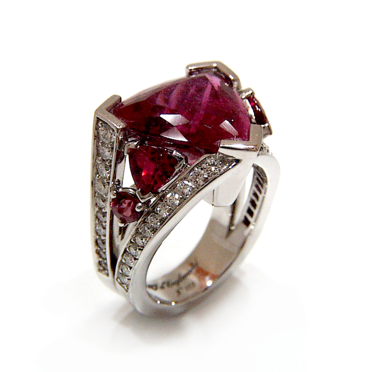 La bague Troïda n° 002, en or blanc 750/1000, ou bague "aux trois Angles" est symbole d'élévation et de puissance.
